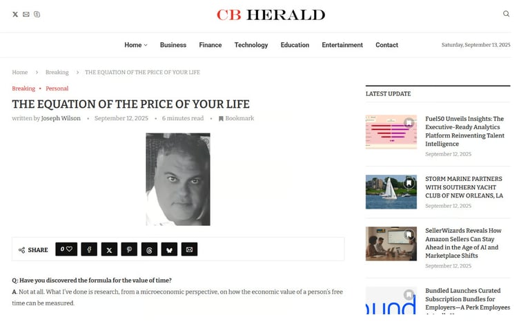 George Monray interviewed by Joseph Wilson at the CB Herald Newspaper (New York) on The Equation of the Price of Your Life: Understanding Its Depths