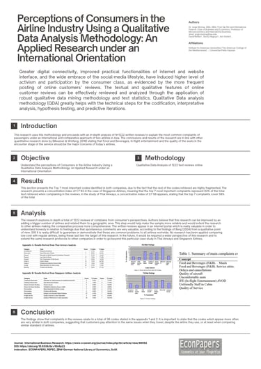 Rimbo, D., Nagoya, R., Solihin, I., & Mongay, J. (2017). Perceptions of consumers in the airline industry using a qualitative data analysis methodology: an applied research under an international orientation. International Business Research, 10(5), 22. https://doi.org/10.5539/ibr.v10n5p22. Index: Econpapers, Scilit.