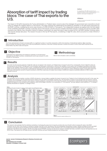 Monray, J. (2025). Absorption of tariff impact by trading blocs: The case of Thai exports to the US. Journal of Contemporary Research in Business, Economics and Finance, 7 (2), 25–39. Index: Econpapers, Crossref. https://doi.org/10.55214/jcrbef.v7i2.9168