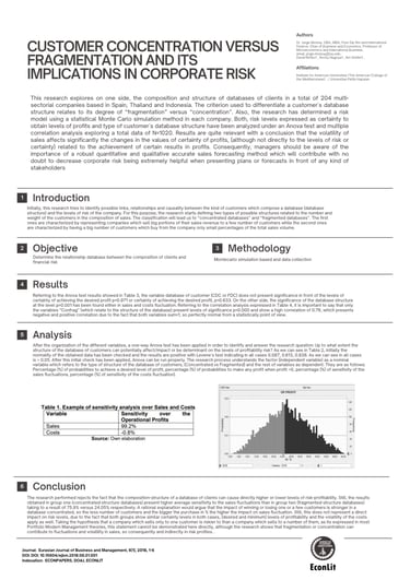 Mongay Hurtado, J.(2018). Customer concentration versus fragmentation and its implications in corporate risk. Eurasian Journal of Business and Management, 6(1), 1-6. https://doi.org/10.15604/ejbm.2018.06.01.001. Index: Proquest, Scilit, Econpapers, J-Gate, ICI, DOAJ.