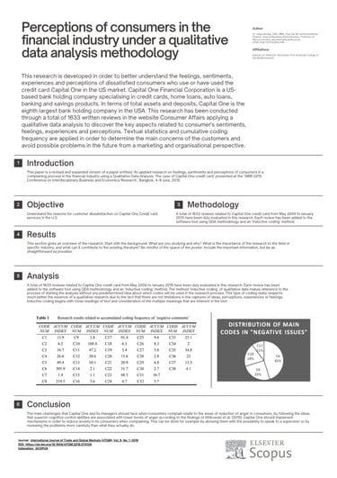 Mongay, J. (2016). Perceptions of consumers in the financial industry under a qualitative data analysis methodology. International Journal of Trade and Global Markets, 9(1), 33. https://doi.org/10.1504/ijtgm.2016.074136. Index: Scopus (Elsevier), among others.