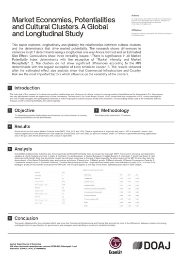 Mongay, J. (2017). Market economies, potentialities and cultural clusters: A global and longitudinal study. Expert Journal of Economics, 5(1), 1–13. Retrieved from https://economics.expertjournals.com/23446749-501/. Index: DOAJ, Econlit, Econpapers.