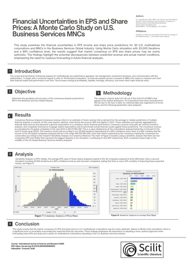 Monray, J. Financial Uncertainties in EPS and Share Prices: A Monte Carlo Study on U.S. Business Services MNCs. Volume 13, Issue 9, September 2024. International Journal of Science and Research. Pages 1591-1596. Index: Scilit, Crossref. DOI: https://dx.doi.org/10.21275/SR24926085653