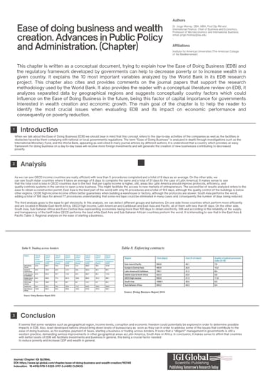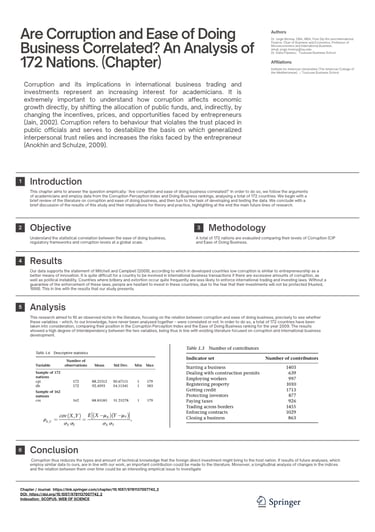 Mongay, J. and Filipescu, D. A. (2012). Are corruption and ease of doing business correlated? An analysis of 172 nations. International Business, 13-26. https://doi.org/10.1057/9781137007742_2 Academy of International Business / Springer. Index: