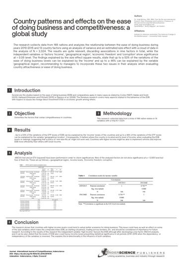 Mongay Hurtado, J. (2018). Country patterns and effects on the ease of doing business and competitiveness: a global study. International Journal of Competitiveness, 1(3), 206. https://doi.org/10.1504/ijc.2018.091478. Inderscience. Index: Crossref, J-Gate